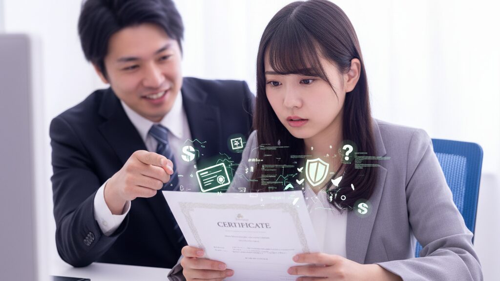 資格って聞くとスゴそうですけど、大事なのはその中身かなって。私だったら、その資格を発行している団体が信頼できるところか、公的なものなのか、まずはしっかり調べちゃうと思います。その団体のWebサイトを見るだけじゃなくて、「(団体名) 評判」とかで検索してみるのも一つの手ですね。